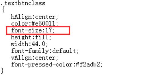 如:按钮默认的公共样式中定义其字体大小为17(如下图),运行到手机上按钮的字体大小就是17。